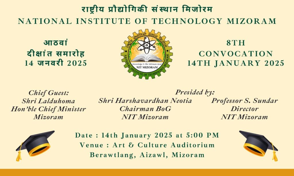 National Institute of Technology Mizoram will organize its 8th Convocation on 14th January 2025 (Tuesday)